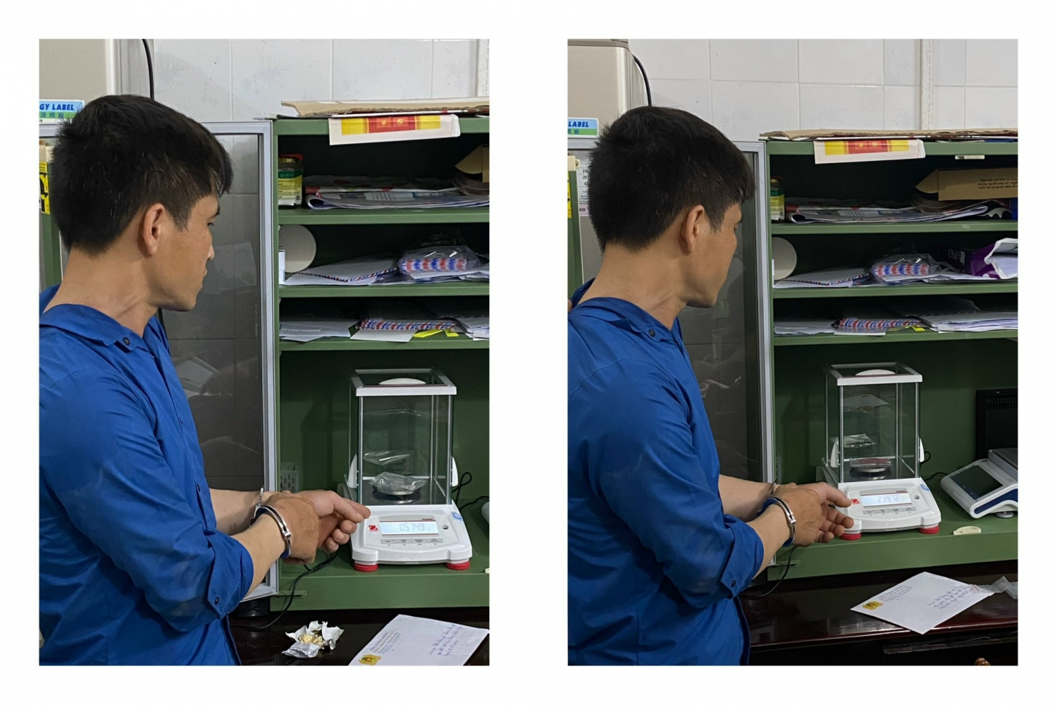 Đối tượng bị bắt giữ xác định khối lượng tang vật nghi ma túy bị thu giữ