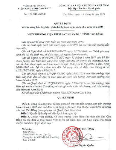 Quyết định về việc công bố công khai phân bổ dự toán ngân sách nhà nước năm 2025