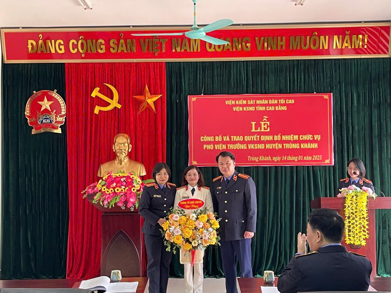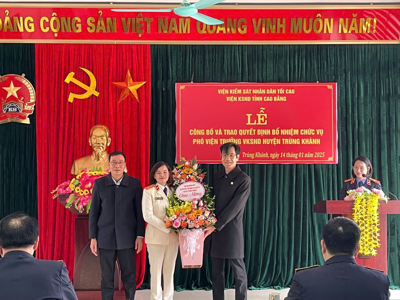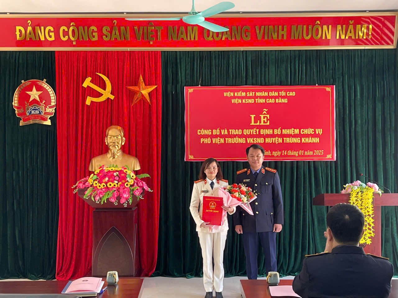 * Công bố và trao Quyết định bổ nhiệm chức vụ Phó Viện trưởng VKSND huyện Trùng Khánh Ngày 14/1, tại Viện KSND huyện Trùng Khánh, Viện kiểm sát nhân dân tỉnh Cao Bằng tổ chức Lễ công bố, trao Quyết định bổ nhiệm chức vụ Phó Viện trưởng VKSND huyện Trùng Khánh