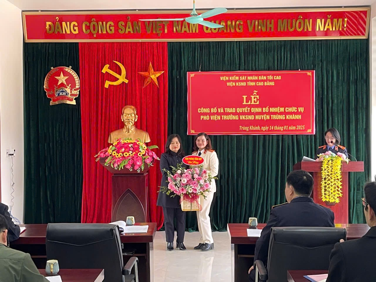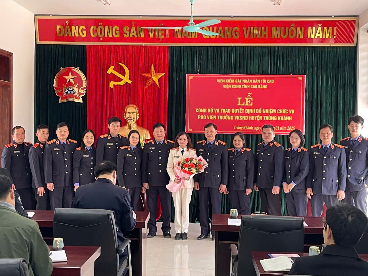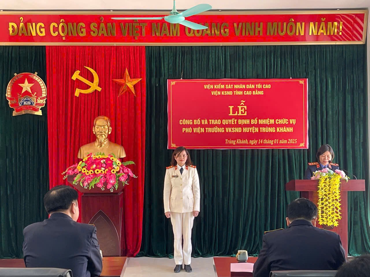 * Công bố và trao Quyết định bổ nhiệm chức vụ Phó Viện trưởng VKSND huyện Trùng Khánh Ngày 14/1, tại Viện KSND huyện Trùng Khánh, Viện kiểm sát nhân dân tỉnh Cao Bằng tổ chức Lễ công bố, trao Quyết định bổ nhiệm chức vụ Phó Viện trưởng VKSND huyện Trùng Khánh