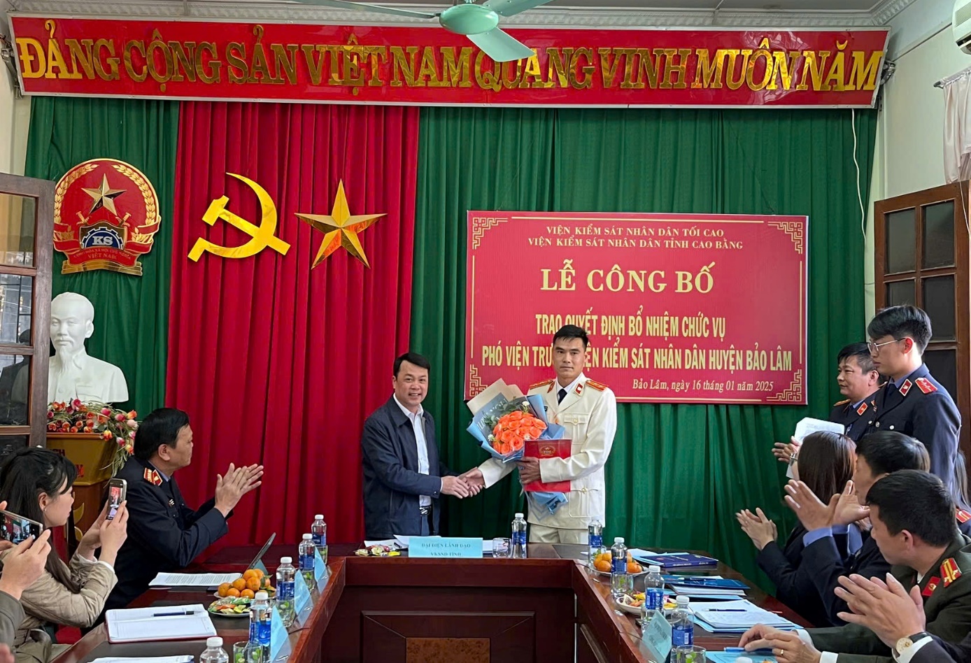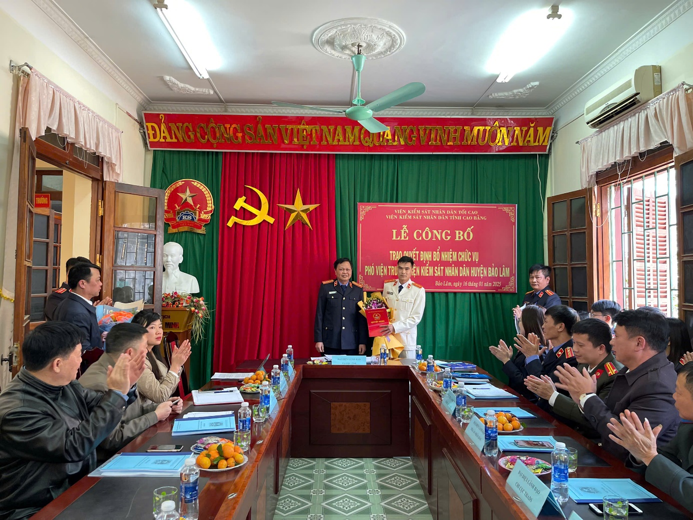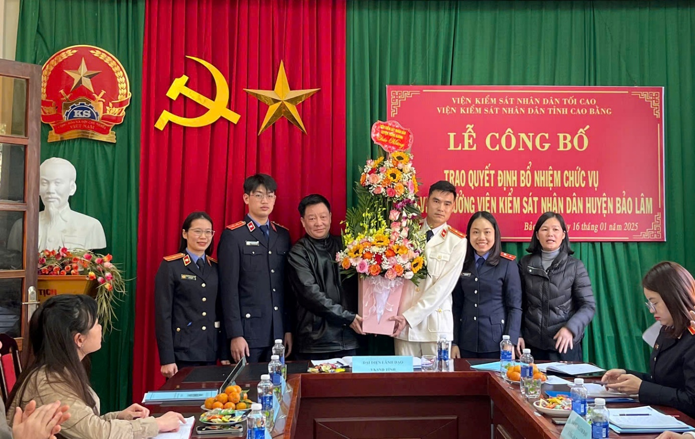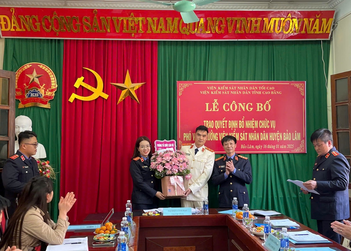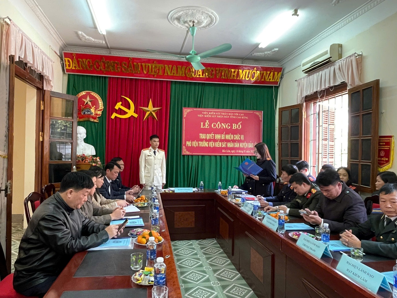 Ngày 16/01, tại trụ sở Viện KSND huyện Bảo Lâm, Viện KSND tỉnh Cao Bằng tổ chức Lễ công bố và trao quyết định bổ nhiệm chức vụ Phó Viện trưởng Viện kiểm sát nhân dân huyện Bảo Lâm.