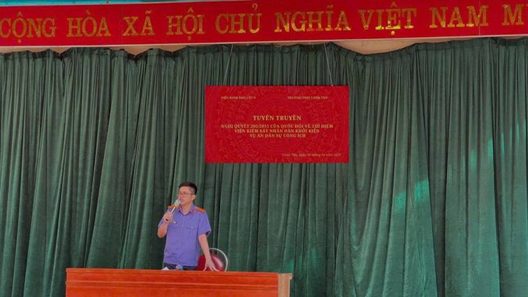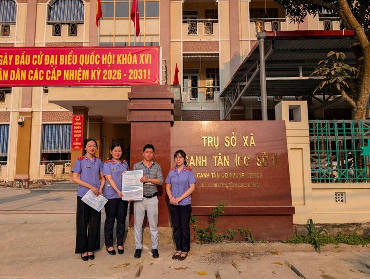 Viện KSND khu vực 2 - Cao Bằng đã tổ chức phổ biến quán triệt nội dung Nghị quyết tại đơn vị; đồng thời, phối hợp với cấp ủy, chính quyền địa phương và các cơ quan, đơn vị trên địa bàn để thực hiện việc tuyên truyền tại trụ sở làm việc của Ủy ban nhân dân xã Minh Khai, Ủy ban nhân dân xã Canh Tân, Tòa án nhân dân khu vực 2 – Cao Bằng, Điểm giao dịch VNPT Quảng Uyên và Ngân hàng Nông nghiệp và Phát triển nông thôn Việt Nam – chi nhánh Quảng Uyên, thông qua nhiều hình thức phù hợp với thực tiễn cơ sở như treo pano, infographic, dán poster, phát tờ rơi và niêm yết công khai tại các trụ sở làm việc và Trung tâm Phục vụ hành chính công – nơi thường xuyên tập trung người dân đến liên hệ, làm việc. Ngoài ra, đơn vị đã phối hợp với Ban giám hiệu Trường THTP Canh Tân tổ chức tuyên truyền, phổ biến về nội dung Nghị quyết số 205/2025 của Quốc hội tại Trường THPT Canh Tân nhờ đó không chỉ giúp học sinh hiểu rõ hơn về quyền được bảo vệ của mình mà còn góp phần nâng cao kiến thức pháp luật, định hướng hành vi phù hợp với quy định hiện hành.