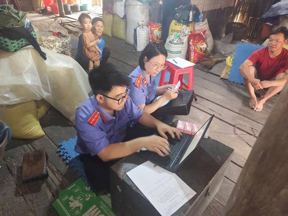 Kiểm sát viên VKSND khu vực 3 xác minh tại gia đình, chính quyền xóm Bản Đông