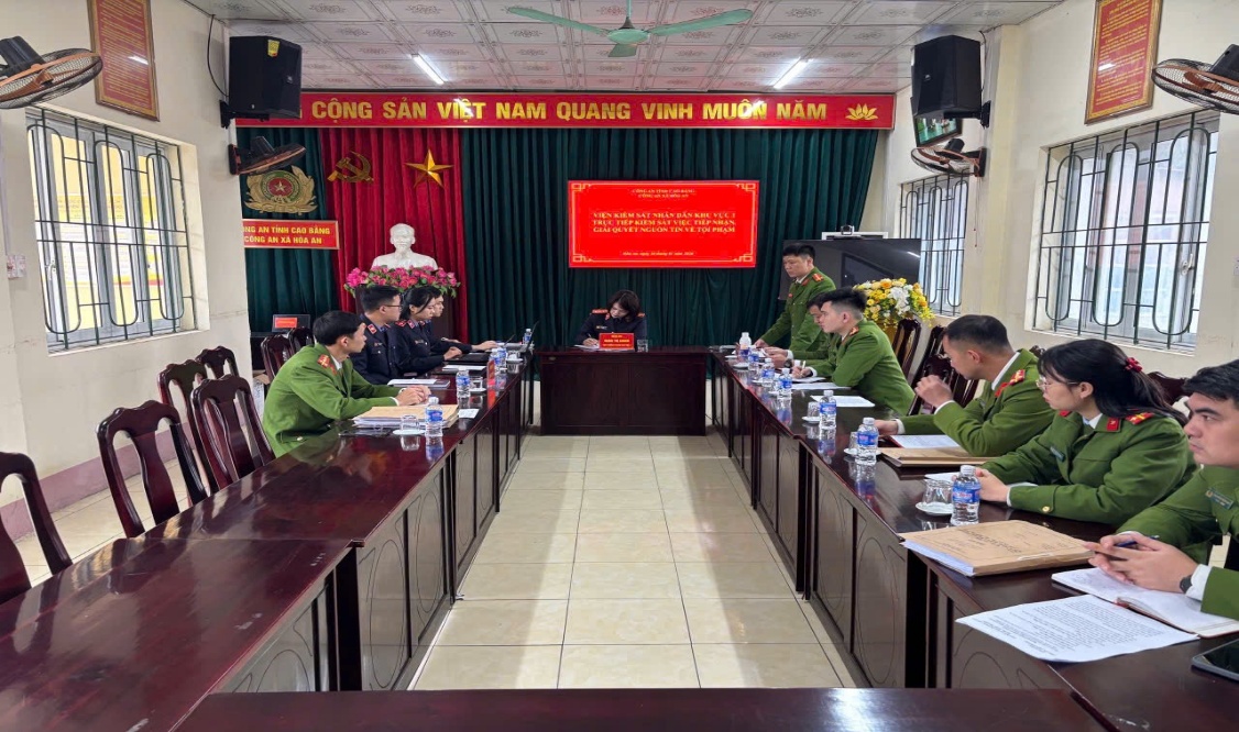 Thực hiện Kế hoạch công tác kiểm sát năm 2026, ngày 30/01/2026, VKSND khu vực 1 – Cao Bằng đã tiến hành trực tiếp kiểm sát việc tiếp nhận, giải quyết nguồn tin về tội phạm tại Công an xã Hòa An và Hạt Kiểm lâm khu vực Hòa An. Đoàn kiểm sát tại Công an xã Hòa An do đồng chí Đoàn Thị Chinh – Viện trưởng làm Trưởng đoàn; Đoàn kiểm sát tại Hạt Kiểm lâm khu vực Hòa An do đồng chí Nông Thị Quỳnh Trang – Phó Viện trưởng làm Trưởng đoàn, cùng tham gia có các đồng chí Kiểm sát viên, Chuyên viên VKSND khu vực 1 – Cao Bằng