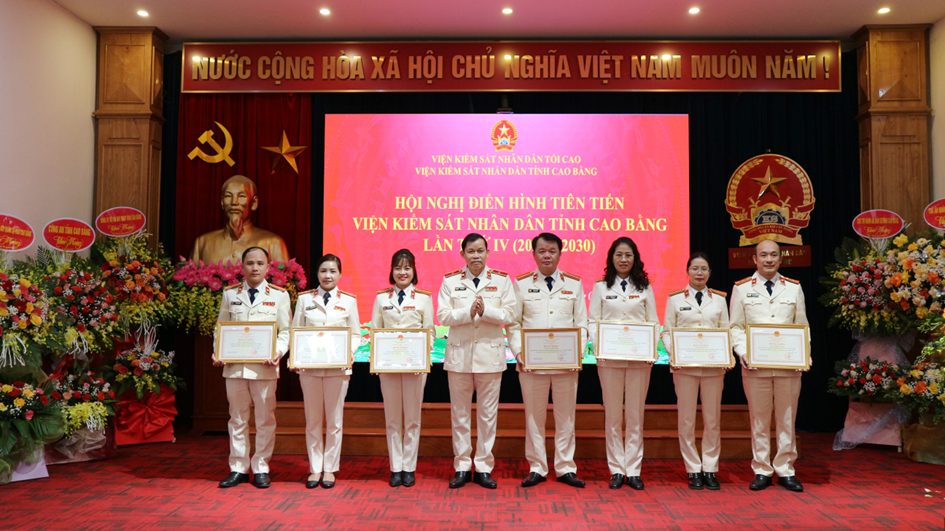 Tại Hội nghị, Lãnh đạo VKSND tỉnh Cao Bằng trao tặng Bằng khen của Viện trưởng VKSND tối cao cho 07 cá nhân hoàn thành xuất sắc nhiệm vụ hai năm liên tục 2023 - 2024. Tặng giấy khen cho 5 tập thể và 22 cá nhân điển hình tiên tiến, có thành tích xuất sắc trong phong trào thi đua yêu nước giai đoạn 2020 – 2025.