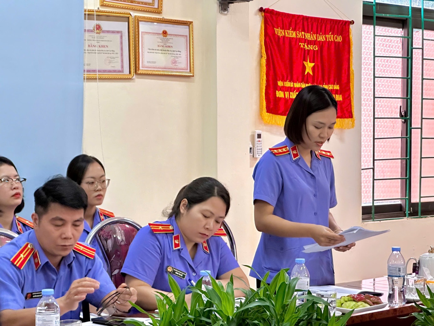 Đồng chí Phạm Mỹ An - Ủy viên Ban chấp hành Đảng bộ, Phó Viện trưởng VKSND tỉnh Cao Bằng phát biểu chỉ đạo,