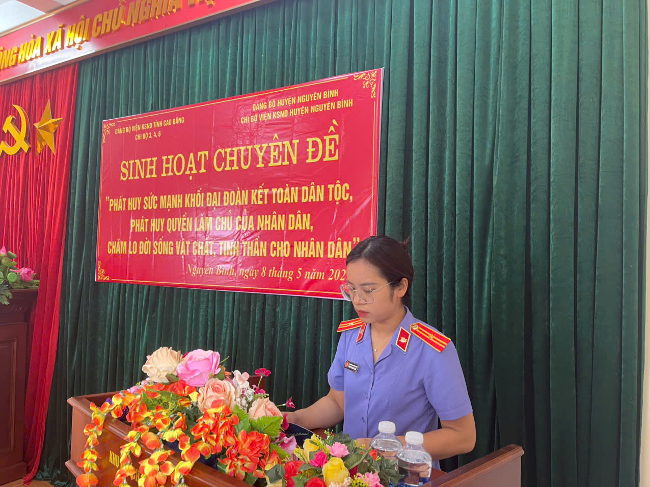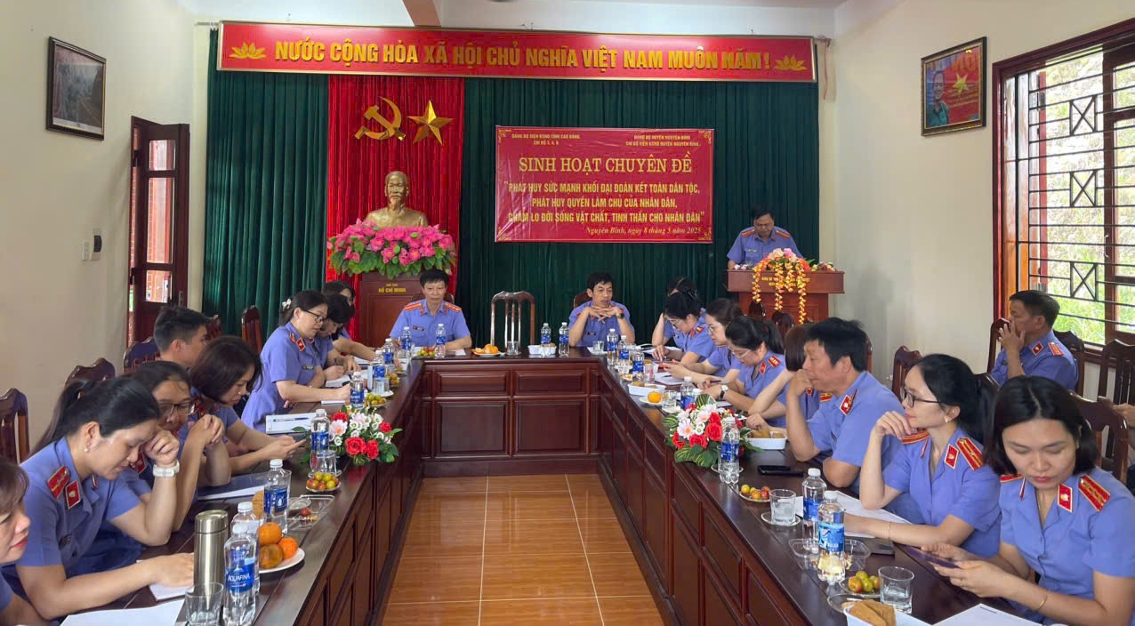 Ngày 08/5, Chi bộ 3,4,6 thuộc Đảng bộ Viện kiểm sát nhân dân (KSND) tỉnh Cao Bằng và Chi bộ Viện KSND huyện Nguyên Bình tổ chức sinh hoạt chuyên đề sâu rộng với chủ đề "Phát huy sức mạnh khối đại đoàn kết toàn dân tộc, phát huy quyền làm chủ nhân dân, chăm lo đời sống vật chất, tinh thần cho nhân dân" tại Khu di tích Quốc gia đặc biệt rừng Trần Hưng Đạo, huyện Nguyên Bình, tỉnh Cao Bằng.